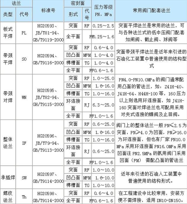 法兰类型和密封面形式